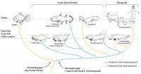 Комплекс эволюционных событий, которые в конце концов привели к превращению некоторых кистеперых рыб в тетрапод, называется тетраподизацией. Процесс тетраподизации интересен не только потому, что через него прошли наши предки, но и потому, что это великолепный пример макроэволюции (подобно происхождению птиц). Мы будем исходить из классической идеи: движущей силой тетраподизации была смена среды обитания, то есть, собственно говоря, переход из воды на сушу. Естественно, что под давлением изменившихся условий организм перестроился. Реальность, скорее всего, была чуть сложнее, прежде всего потому, что местом обитания переходных форм могли быть переходные среды, не являющиеся ни водой, ни сушей в нашем современном понимании. Но не
